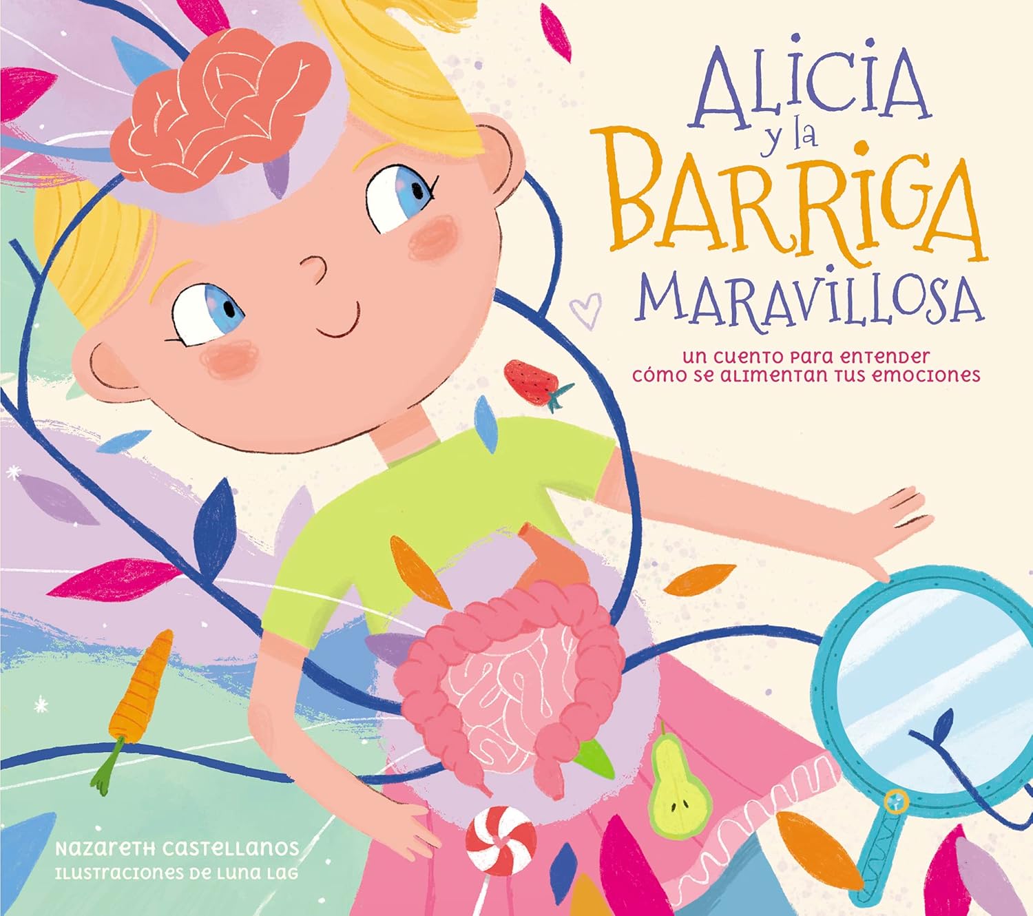 En este segundo libro, la neurocientífica Nazareth Castellanos, explica a los más pequeños, a través de un maravilloso cuento ilustrado, cómo funciona la barriga, el segundo cerebro del cuerpo, y cómo lo que comemos afecta a nuestras emociones. ¿Sabías que en nuestro intestino viven millones de bichitos llamados bacterias? Unos tienen miles de patas, otros unos bigotes larguísimos, otros tienen treinta y cinco ojos, pero todos son pequeñísimos, casi invisibles. Viven allí porque nos ayudan a sacar la energía de la comida. Pero también nos ayudan a ser más listos, más buenos y a estar más felices. Descubre todo esto y mucho más acompañando a Alicia en su viaje hacia el centro de su barriga, porque desde allí también tomamos muchas decisiones, y es también un gran centro neurálgico de emociones, aprendizaje y estados de ánimo. En este segundo libro Alicia se encontrará con el señor Zanco Panza en su fiesta de Feliz No Cumpleaños, y junto a la señora Cajal descubrirán cómo afectan a nuestras emociones los diferentes alimentos que comemos. A través de coloridas ilustraciones, sencillas metáforas y pequeñas cajitas de información, los más pequeños descubrirán: -Cómo funciona el proceso de la alimentación -La importancia de comer bien para estar sano y fuerte y alegre -Lo necesario que es tener una buena actitud para estar feliz Aprender cómo funcionamos por dentro nos ayuda a cuidarnos a nosotros mismos. Aprender cómo funcionamos por dentro nos ayuda a cuidarnos a nosotros mismos.
